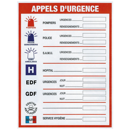 460 x 320 mm | appels d'urgence | Sur commande | Trouvez le chez votre adhérent | ||