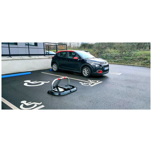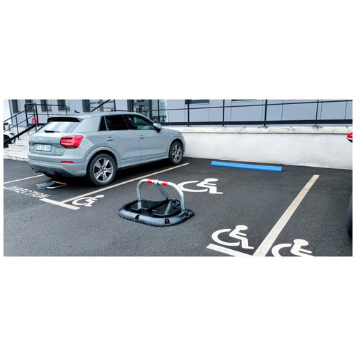 Structure caoutchouc à fixer avec arceau de parking permettant de réserver une place de stationnement. La structure à fixer permet de protéger l'arceau lorsqu'il est rabattu du passage des véhicules. L'arceau est muni de 2 bagues anti-frottement en polypropylène et de 2 bandes réfléchissantes rouges de classe 1. Il est équipé d'une serrure unique et d'un jeu de 3 clés différentes. Fixations en acier inoxydable fournies pour fixer l'arceau à la structure. Les fixations au sol sont en opt [...]
