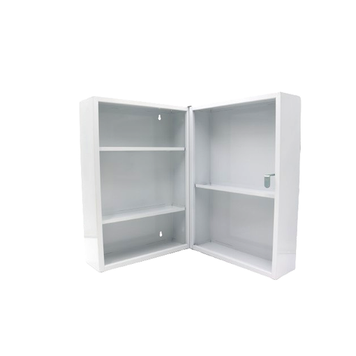 fournie avec 2 clefs étagères en plastique amovibles et une signalétique "premiers secours".