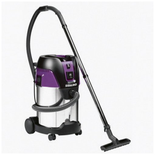 équipement : 2 tubes inox droits 500 mm Ø 32 mm, flexible 3,5m Ø 32 mm, suceur à eau & poussières, suceur plat, suceur capitonnage, brosse, filtre cartouche PET classe M, sac synthétique, filet range accessoires, adaptateur pour outil électroportatif.