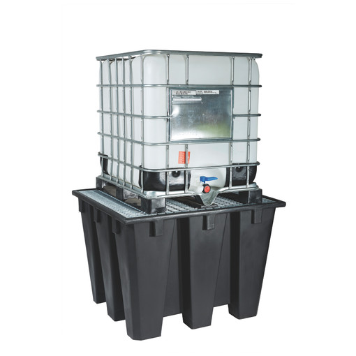 Bac de rétention plastique 1100 litres, caillebotis galva, 1380x1280x1000