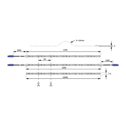 Bande LED flexible, fixation adhésive. Utilisation universelle avec un éclairage de travail, fonctionnel, lumineux. Puissance 9,6W/ml. Livrée sans alimentation.