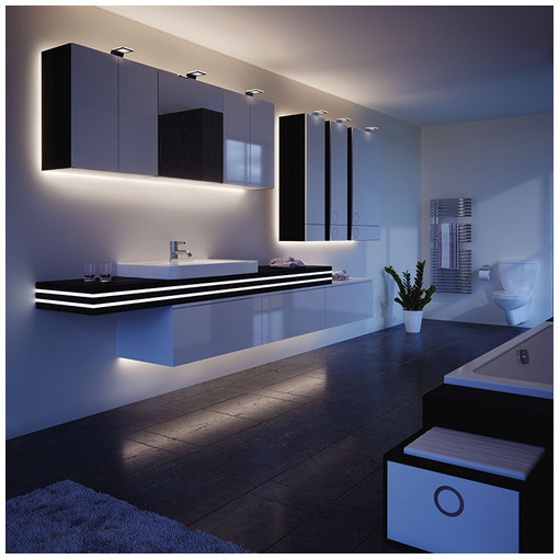Bande LED flexible, fixation adhésive. Utilisation universelle avec un éclairage uniforme. Puissance 4,8W/ml. Livrée sans alimentation.