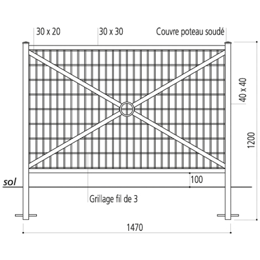 BARRIERE GRILLAGEE ORLEANS BORDEAUX 1200 X 1470 MM |