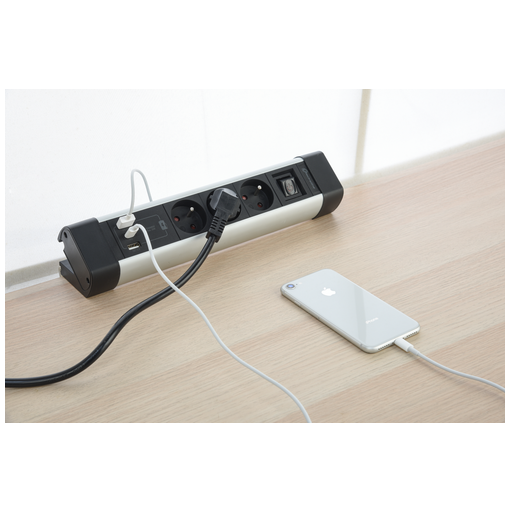 BLOC MULTIPRISES ALU 3 PRISES + 3 USB(2A+1C) 3G1,5 2M PD 20W NOIR |