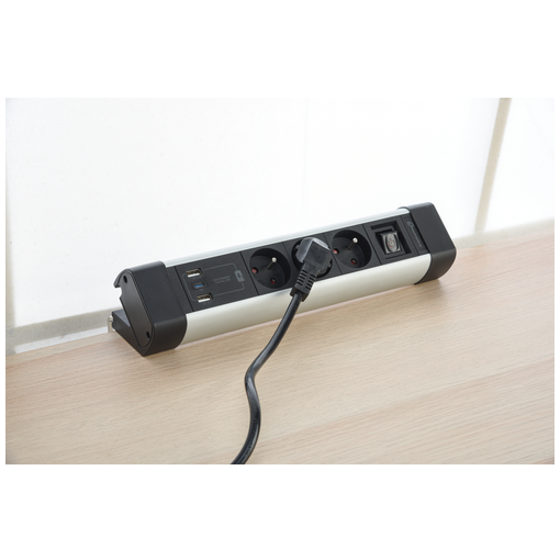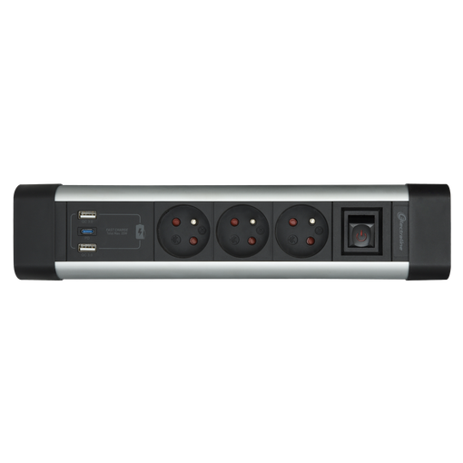 Bloc multiprises alu 3 prises + 3 usb(2a+1c) 3g1,5 2m pd 20w noir