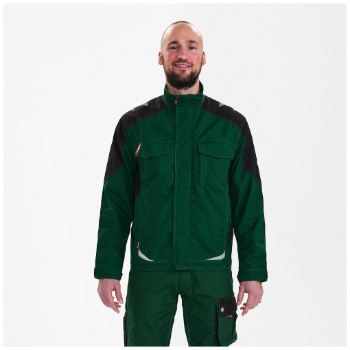 Blouson de travail fonctionnel comportant de nombreux détails. Dos allongé avec soufflet dans le dos pour une meilleure liberté de mouvement. Pièce au-dessus de la fermeture à glissière sur le devant. Coudes renforcés. Deux grandes poches repose-mains. Deux poches poitrine à rabat ; la droite avec bride et anneau en D pour, par exemple, fixer un badge et la gauche avec une poche zippée supplémentaire pour le portable, entre autres. Deux grandes poches intérieures avec fermeture velcro. [...]