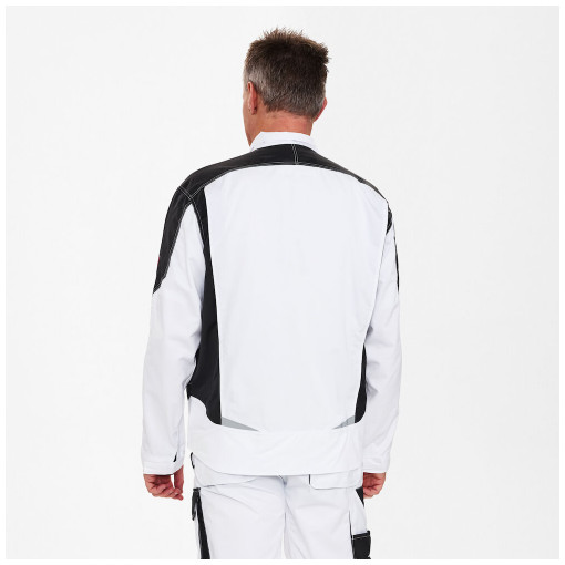 Blouson de travail fonctionnel comportant de nombreux détails. Dos allongé avec soufflet dans le dos pour une meilleure liberté de mouvement. Pièce au-dessus de la fermeture à glissière sur le devant. Deux grandes poches repose-mains. Deux poches poitrine à rabat ; la droite comportant une bride et un anneau en D pour, par exemple, fixer un badge ainsi qu une poche zippée supplémentaire pour le portable. Deux grandes poches intérieures avec fermeture velcro. Poignets réglables. Bandes r [...]