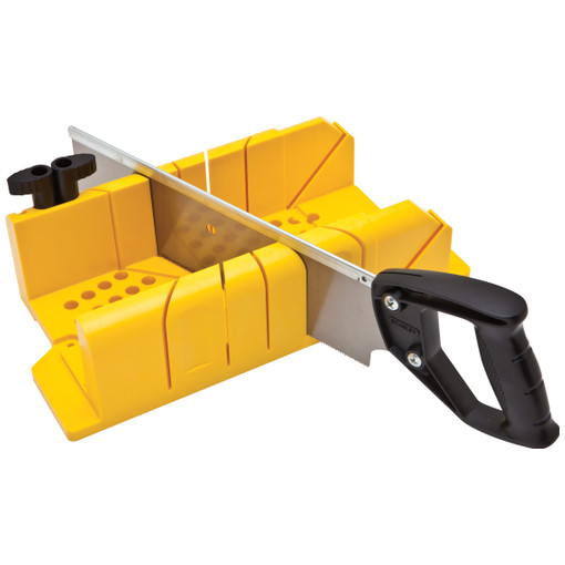 Idéale pour les travaux sur baguettes, tasseaux, moulures, tubes, ... boîte à onglets en plastique ABS très résistante 220 x 80 x 40 mm 4 angles de coupe : 90°, 45°, 22.5° et coupe inclinée 45° semelle surélevée pour un travail en butée plateau alvéolé avec cadre excentrique pour le blocage des pièces à couper point d'ancrage pour permettre la fixation sur l'établi de travail cornières rabattables en caoutchouc antidérapantes pour travailler à palt ou en butée contre son plan de tra [...]