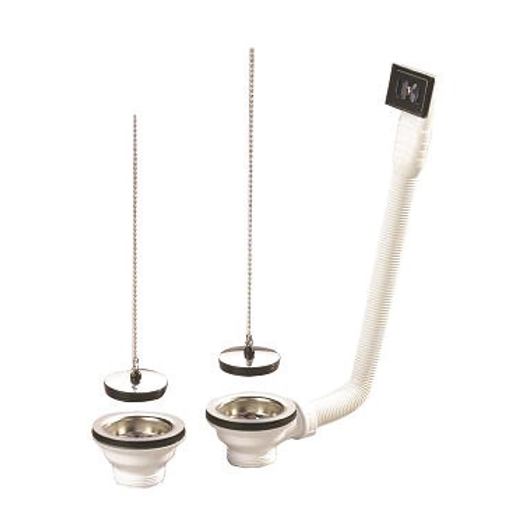 Bonde 84 mm avec trop plein pour evier gres 2 bacs 20405