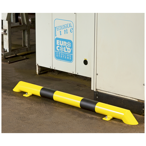 peinture poudre époxy jaune avec bandes de signalisation noires.