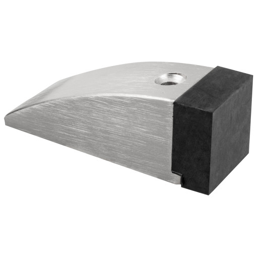 Butée de porte en zamack finition satiné nickel + caoutchouc 76,5 x 28 mm.