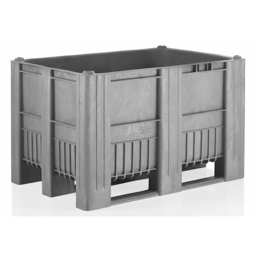 Caisse palette plastique 800x1200x740 mm, injectée monobloc, 2 semelles, grise