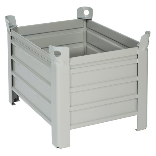 CAISSE-PALETTE TÔLÉE 600X800X600, 4 PIEDS, GRIS RAL 7030 |