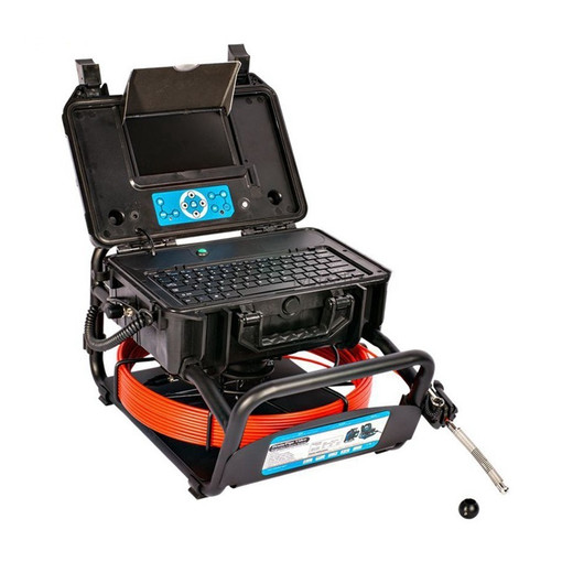 équipée d'une mini tête de caméra de 14 mm, d'un câble en fibre de verre de 30 m et d'un moniteur LCD de 7 avec SD