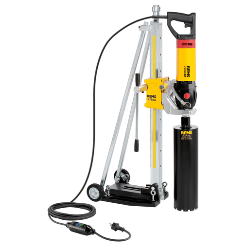 c olonne de carottage REMS Titan anti-vibrations inclinable 45°, avec roulettes et niveau à bulle