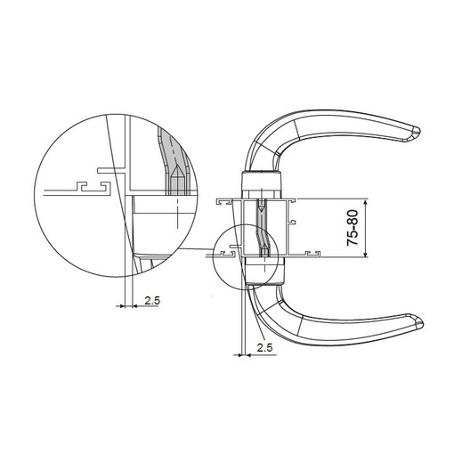 Déporté de 2,5 mm.