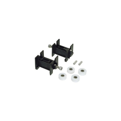 Jeu de 2 chariots pour rénovation Comprenant 2 chapes pour cage maxi de : H 40mm x L 40 mm et mini : H 23 mm x L 22 mm 2 jeux de galets rayon 150° et R3