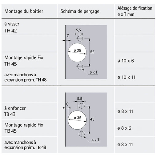 Charnière invisible clipsable