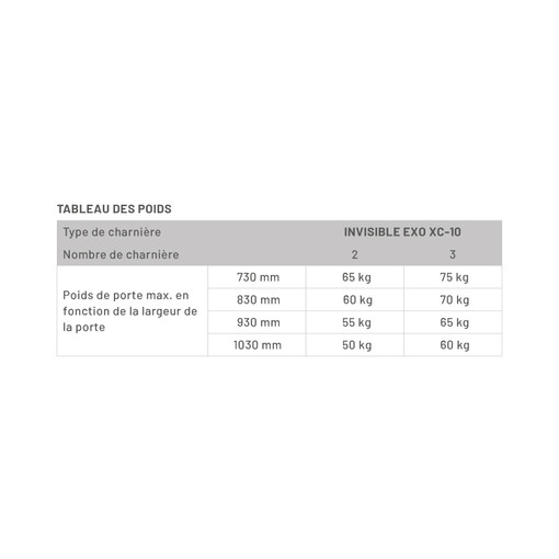 CHARNIERE INVISIBLE EXO XC-10 |