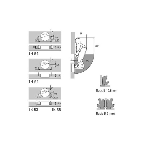 Charnière invisible clipsable avec amortisseur intégré dans le bras.