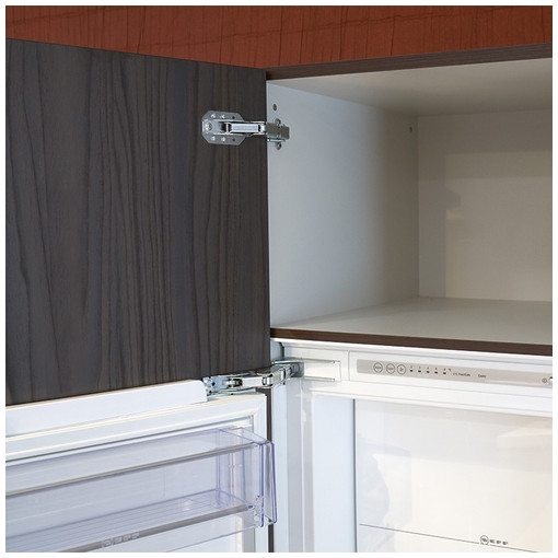 Charnière spéciale Kamat pour aménagements de meubles de réfrigérateur.Charnière de guidage sans ressort. Elle guide le prolongement (la partie haute) de la porte de réfrigérateur.Compatible uniquement avec les réfrigérateurs équipés de charnière type K de marque Hettich.Kit composé de :CharnièreGabarit de perçageEntretoise pour corps de meuble de 16 mmPlaques d'écartementCache blancVis de fixationInstructions de montage