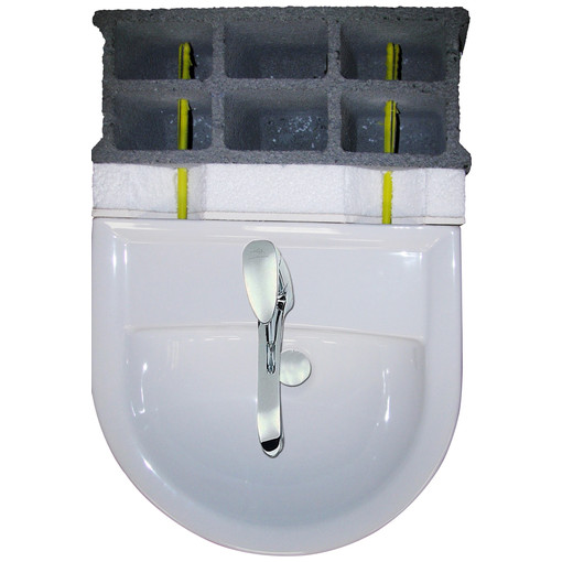 Fixation de lavabo pour matériaux creux avec doublage plaque de plâtre + isolant : expansion sur plusieurs alvéoles