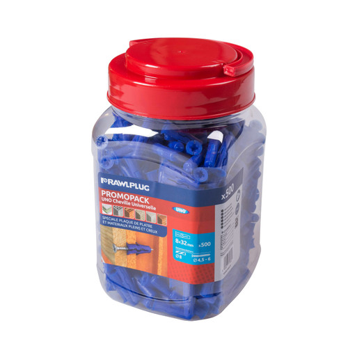 Cheville universelle pour la fixation dans tous types de matériaux supports pleins et creux recommandé pour la mise en '9cuvre dans les supports inconnus et les trous déjà utilisés cheville de petite taille permet la mise en '9cuvre dans des parois minces géométrie unique pour garantir une expansion et tenue maximales ailettes anti-rotation dans le trou collerette empêche le glissement de la cheville dans des trous surdimensionnés applications : étagères, plafonds suspendus, installation élec [...]