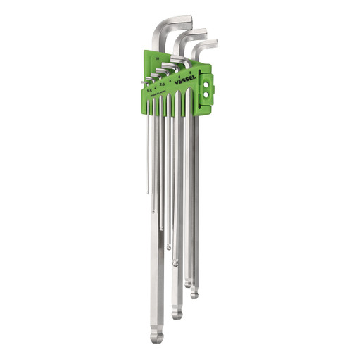Cle male 6 pans longue a tete spherique et tete tronquee (jeu de 9)
