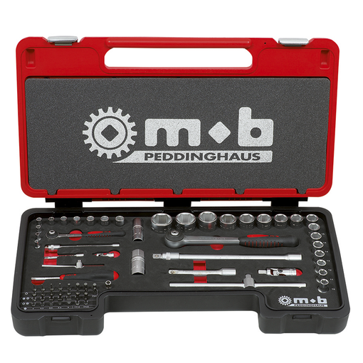 Contient : - 10 douilles 6 pans : 4/5/6/7/8/9/10/11/12/13 mm - 1 cliquet rond - 1 cardan - 2 rallonges : 75 mm / 140 mm click'n hold - 1 poignée coulissante - 1 poignée tournevis - 1 douille porte-embouts - 30 embouts : - 5 Fentes : 4/4,5/5,5/6,5/8 - 4 Phillips : PH0/PH1/PH2/PH3 - 4 Pozidriv : PZ0/PZ1/PZ2/PZ3 - 7 Torx : T10/T15/ T20/T25/T27/T30/T40 - 2 Tamper Torx TT10/TT20 - 8 Hexagonaux : H1,5/H2/H2,5/H3/H4/H5/H6/H8 1/2" : - 16 douilles 6 pans : 10/11/12/13/14/15/16/17/18/19/21/22/24/27/30/32 mm - 1 [...]