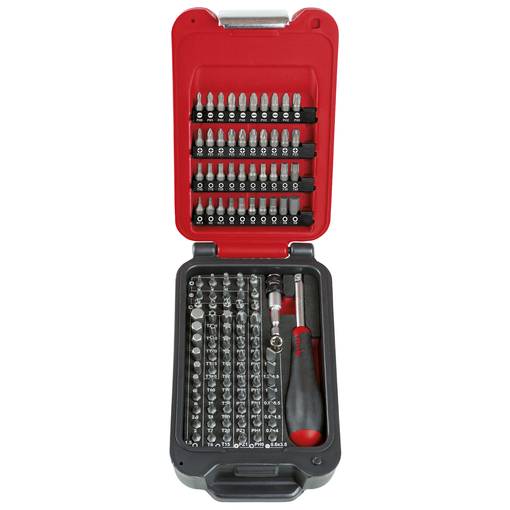 Coffret PEHD : 135 x 215 x 60 mm comprenant : 1 poignée emmanchée 1 porte-outils magnétique 1 douille porte-embouts 112 embouts de vissage : - 7 Fentes : 3,5-4-4,5-5,5x2-6,5-8 - 20 Pozidriv : PZ0 - PZ1x5 - PZ2x11 - PZ3x2 - PZ4 - 20 Phillips : PH0x2-PH1x5-PH2x10-PH3x2-PH4 - 25 Torx : T6-T7-T8-T9-T10x2-T15x2-T20x8-T25x2-T27-T30x3-T40x2-T50 - 5 Tamper Torx : TT10-TT15-TT20-TT30-TT40 - 20 Hexagonaux : H1,5x2-H2x2-H2,5x2-H3x2-H4x3-H5x3-H6x2-H7-H8x2-H10 - 4 Torqset : 5-6-8-10 - 3 Triwing : 2-3-4 - 4 Spanner [...]