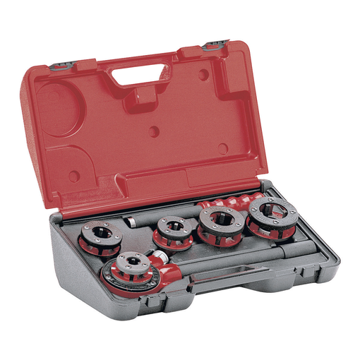 Coffret plastique filieres manuelles tetes inter bspt dte 3/8 a 1.1/4 cage+bras
