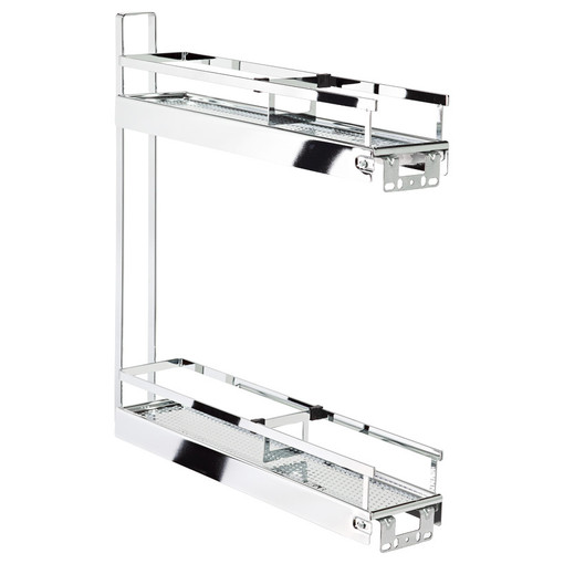Combinés de faible encombrement pour aménager les espaces étroits. Tous sont à sortie totale, avec rappel automatique en fin de course sur amortisseur, pour une fermeture douce et silencieuse. Le réglage 3 dimensions de la façade facilite leur intégration parmi les éléments de la cuisine. Pose de la façade façon tiroir. Combinés composés de : Cadre et tablettes fond perforé en acier chromé Coulisses sortie totale sur amortisseur Fixation façade ClickFixx avec réglages 3D. Montage non [...]