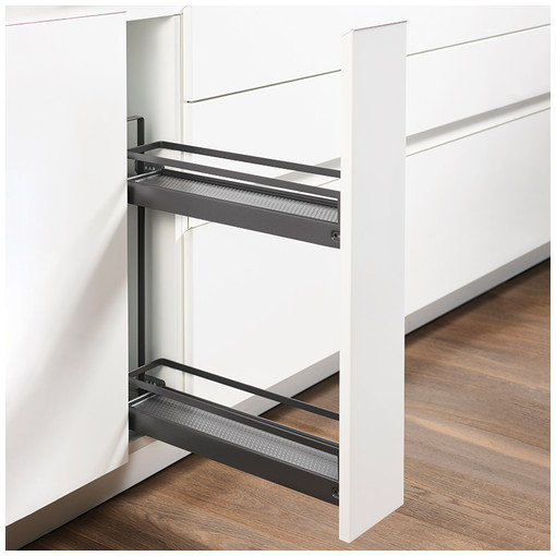Combinés de faible encombrement pour aménager les espaces étroits.Tous sont à sortie totale, avec rappel automatique en fin de course sur amortisseur, pour une fermeture douce et silencieuse.Le réglage 3 dimensions de la façade facilite leur intégration parmi les éléments de la cuisine.Pose de la façade façon tiroir.Combinés composés de :Cadre et tablettes fond perforé en acier chroméCoulisses sortie totale sur amortisseurFixation façade ClickFixx avec réglages 3D.