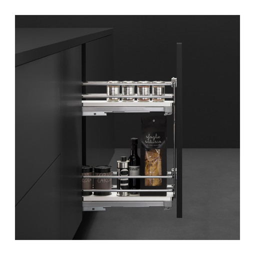 Constitué de : 2 corbeilles fond mélaminé avec bordure et galerie fil chromé