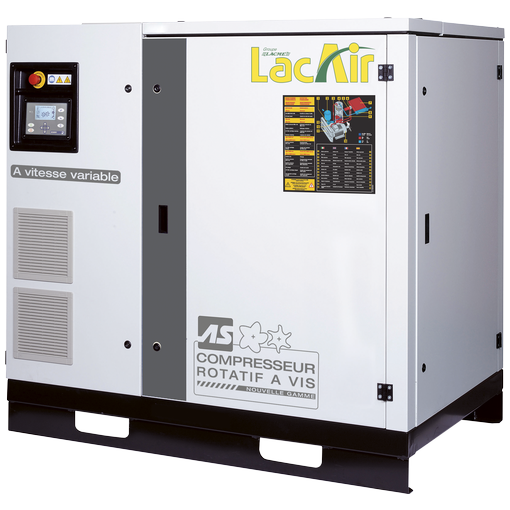 Compact entièrement protégé bloc vis EVOLUTION (EVO 6) : haute efficacité et "long life" variateur de vitesse : débit adapté aux besoins, démarrage en douceur système séparation air/huile : 3 étages, haute efficacité moteur IE3 (haut rendement) très puissant : jusqu'à 331 m³/h faible niveau sonore : 65 dB(A) équipements : tableau de commande électronique AIR ENERGY CONTROL 2, châssis robuste, facilement transportable, bouton arrêt d'urgence, flexible de connexion cuve ou réseau (1-1/4' [...]