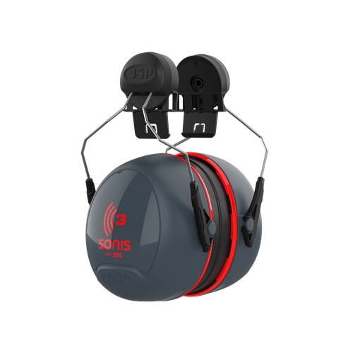 Les fentes universelles des casques JSP permettent d'installer facilement les coquilles anti-bruit Sonis® ; ainsi que les écrans Surefit&trade de JSP pour une protection maximale.