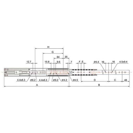 COULISSE A BILLES TELESC NOIRE 450MM AV/AMORTIS |