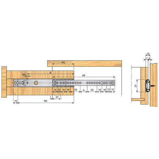COULISSE A BILLE HT.27 LONG.310MM S/PARTIELLE |