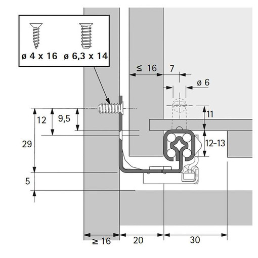 Convient aux tiroirs avec une épaisseur du côté de tiroir jusqu'à 16 mm