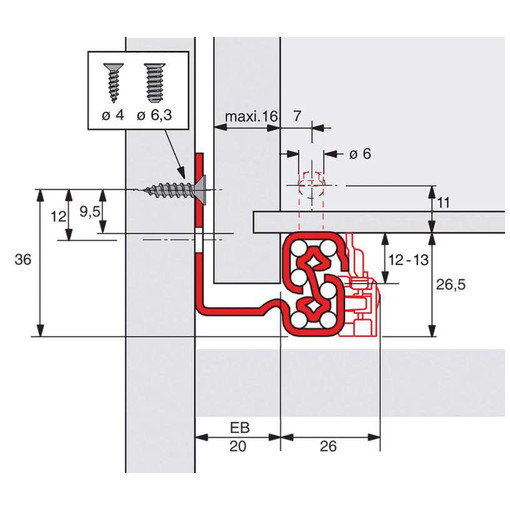 Convient aux tiroirs avec une épaisseur du côté de tiroir jusqu'à 16 mm