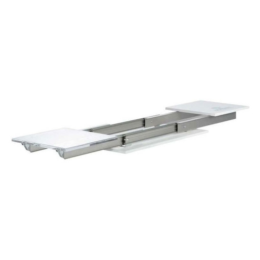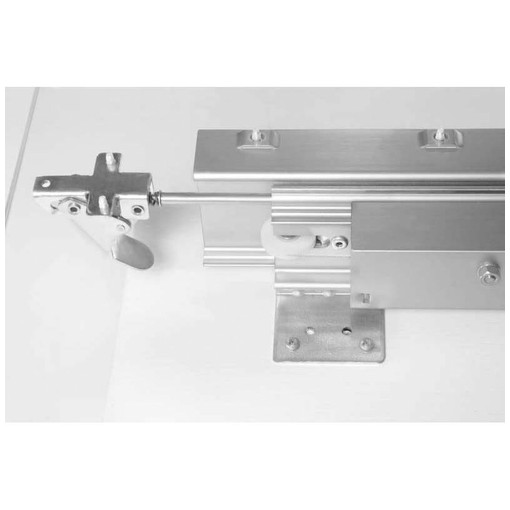 Coulisses de table aluminium à ouverture synchronisé. Pour table à 4 pieds à ouverture centrale et piètement fixe. Ces coulisses permettent une ouverture simultanée des deux demi-plateaux pour des tables nécessitant une grande ouverture centrale. Leur montage s'effectue par dessous, sur un cadre ou des traverses, grâce aux équerres présentes sous les profilés. La hauteur de montage de ces coulisses, permet d'aménager l'espace de coffrage nécessaire dans la table pour stocker les allonges [...]