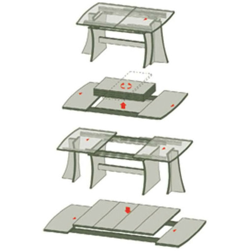 Pour table à 4 pieds à ouverture centrale et piètement fixe.
