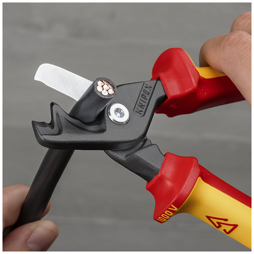 Conforme à la norme DIN EN/IEC 60900 - VDE AC 1000 V.Avec charnière à forte démultiplication, poignées longues et tranchants optimisés : une coupe nettement plus facile qu avec un coupe-câble compactgrande capacité de coupe : coupe les câbles en cuivre ou en aluminium rigides jusqu à 35 mm², les câbles toronnés jusqu à 70 mm² et les câbles à torons fins jusqu à 120 mm²deux zones de coupe : tranchant étagé maintenant les câbles, gros et petits, près de la charnière pendant la coupe [...]