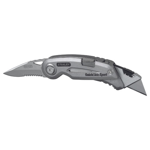 Face couteau sport : - lame acier inoxydable de 76 mm pour plus de résistance - denture sur la lame pour coupes intenses - cran d'arrêt avec bouton poussoir pour plus de sécurité et une utilisation aisée face couteau Quickslide : - glissière de lame en zinc - maniement d'une seule main - excellent maintien de la lame pour une sécurité optimale - compatibilité lame trapèze et lame crochet pour plus de polyvalence mécanisme de blocage interne empêchant de sortir les 2 lames en même temps co [...]