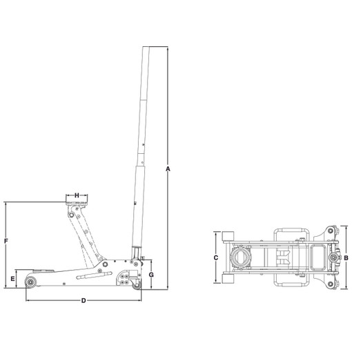 Corps 100 % aluminium, ce qui en fait un cric ultra léger pour utilisation en courses ou en dépannage sur route fourni avec un sac en tissu pour le transporter facilement système à double piston réduisant le nombre de coups nécessaires pour atteindre la hauteur maximale bac de rangement pour petits outils mousse sur la poignée évitant les dommages sur la carrosserie équipé de roues en aluminium pour le 1,5T et de roues en nylon pour le 2,5T Ø de la selle : 97 mm nombre de coups : 5. [...]