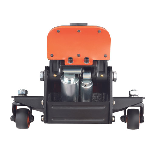 Cric avec un système d'approche rapide, conçu pour lever la plus large gamme de véhicules standards nouveau système d'approche rapide réduisant le nombre de coups de 11 à 4,5 roues en acier conique et revêtues en polyuréthane offrant la meilleure man'9cuvrabilité système renforcé de bouchons de cardan évitant le renversement et la déformation pédale extra large et poignée composite incurvée pour une utilisation rapide, sûre et confortable roues avants montées avec des écrous en nylon p [...]