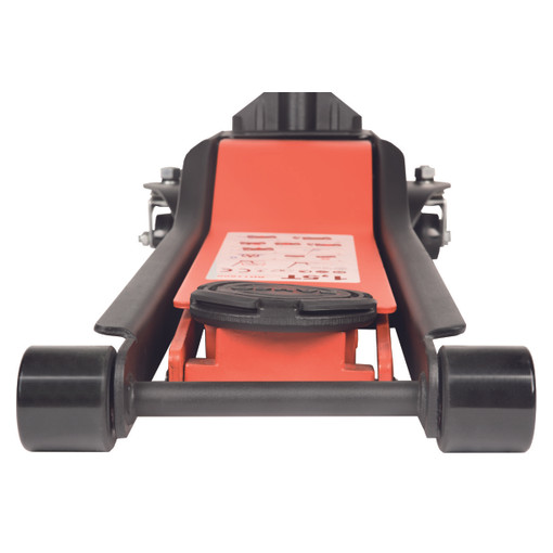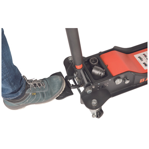 Cric à hauteur d'entrée extra basse et portée extra longue système à double piston réduisant le nombre de coups nécessaires de 50 % pédale extra large et poignée composite incurvée pour une utilisation rapide, sûre et confortable roues en acier et polyuréthane assurant une excellente durabilité et une utilisation silencieuse protection des pistons et des ressorts contre la poussière selle en caoutchouc protégeant l'extérieur des véhicules et évite les glissements mousse de la poignée [...]