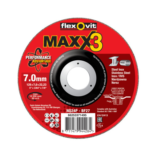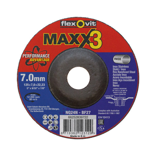 DISQUE A EBARBER MEULE DEPORTEE MAXX3 125X7MM ACIER/INOX |