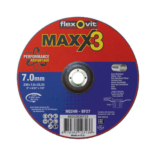 DISQUE A EBARBER MEULE DEPORTEE MAXX3 230X7MM ACIER INOX |